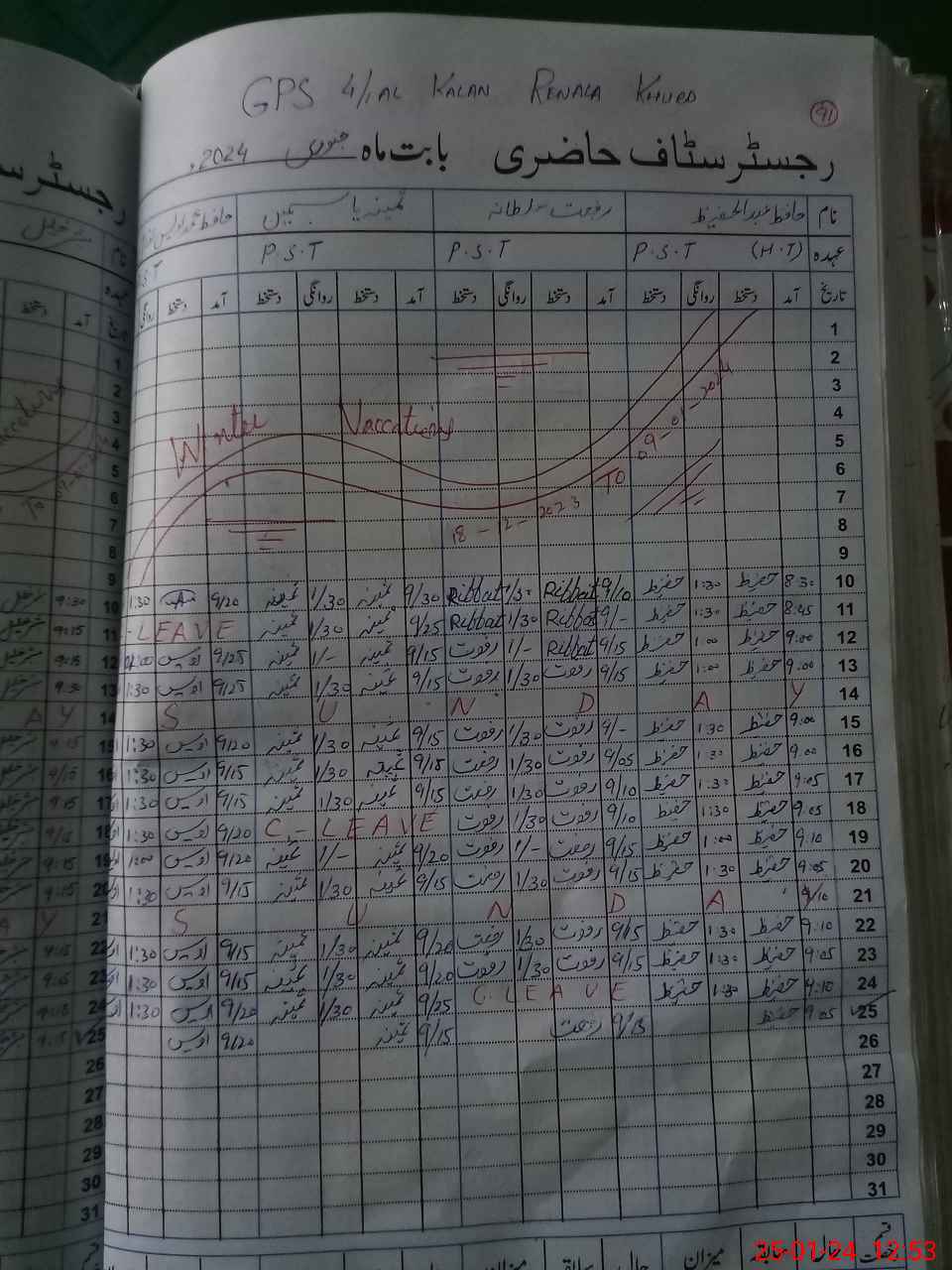 | Leave | Duty | Absent | Maternity | Medical | Ex- Pak |