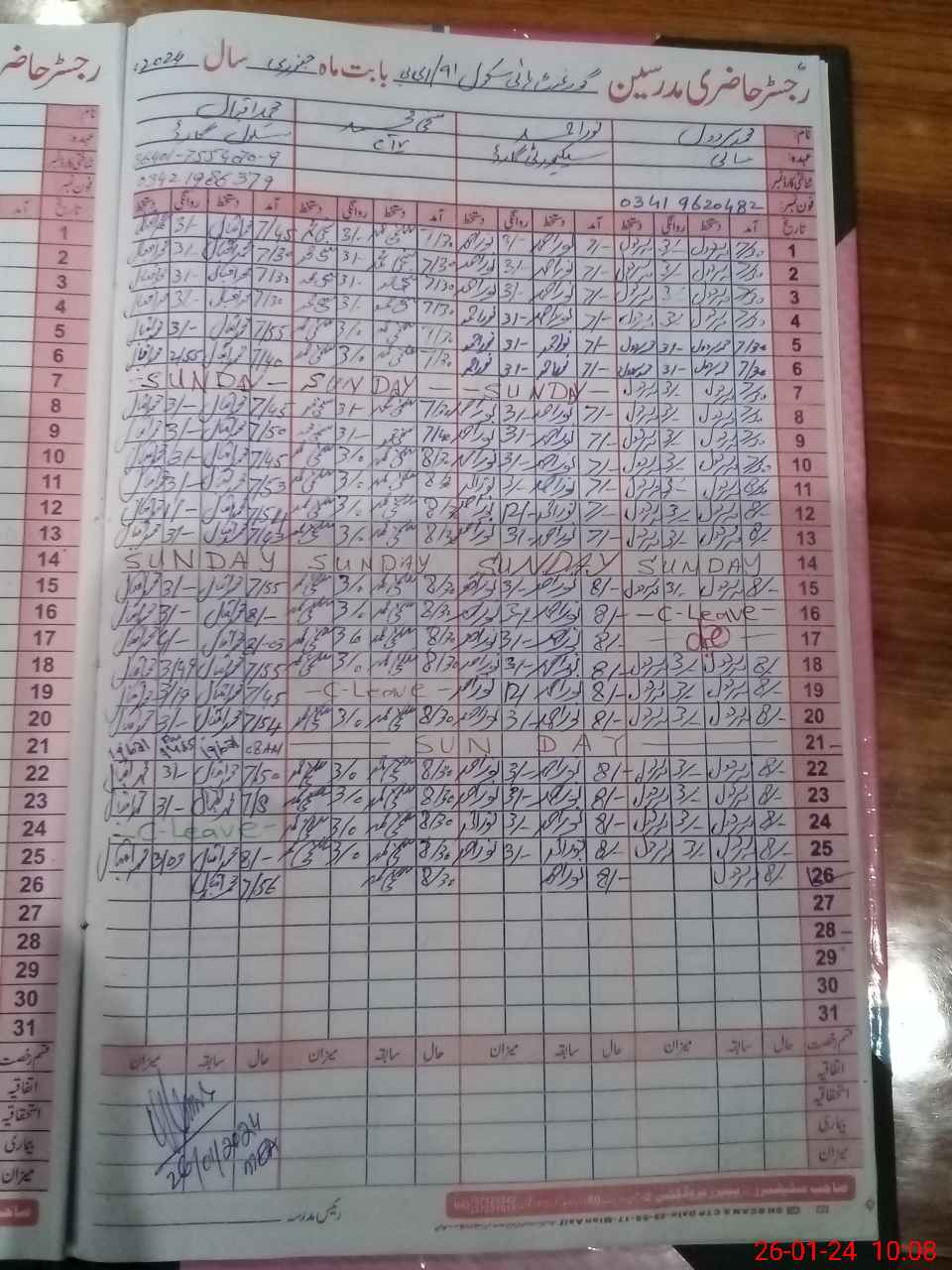 | Name: TA**** IM**** Designation: (School Headmaster's/Headmistress's) S.HM Phone/Cell Number: 03**** |