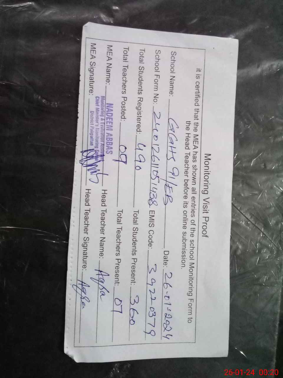 | EMIS Code: 39220379 | Name of School: GGHS 91 EB MOHALAN WALA | |||