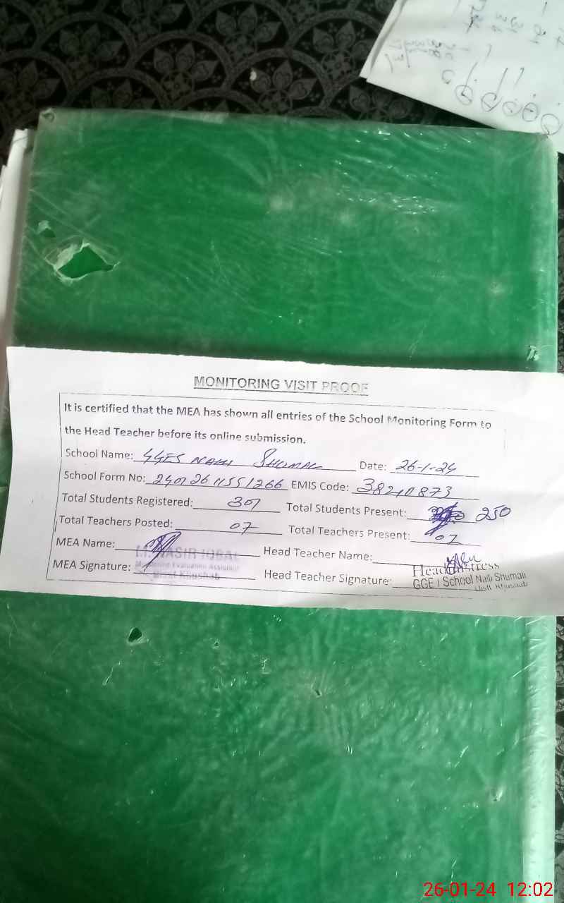 | EMIS Code: 38210873 | Name of School: GGHS NALLI SHUMALI KHUSHAB | |||