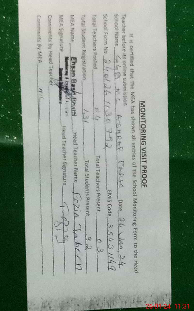 | EMIS Code: 35431149 | Name of School: GGPS MC ASHRAF PARK | |||