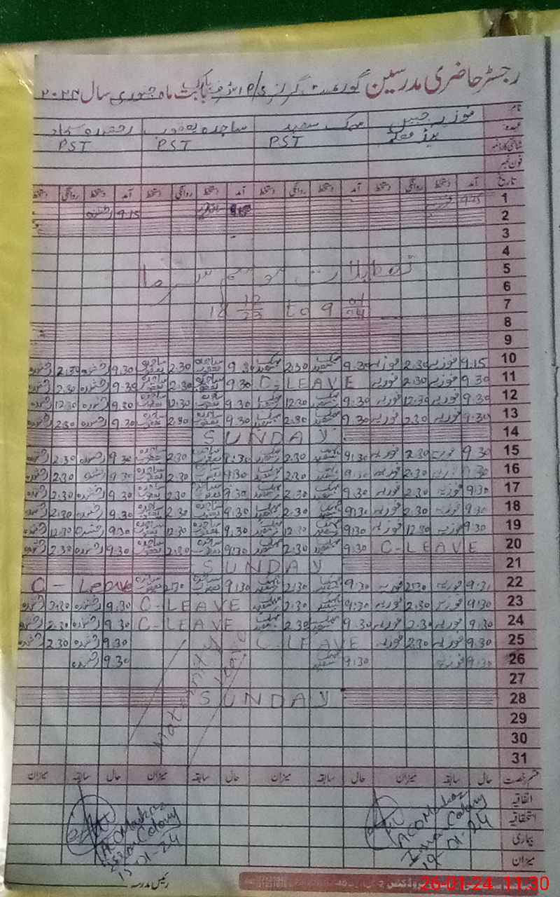 | CNIC | Full Name | Designation | R/C | Absence During Last Calender Month |
