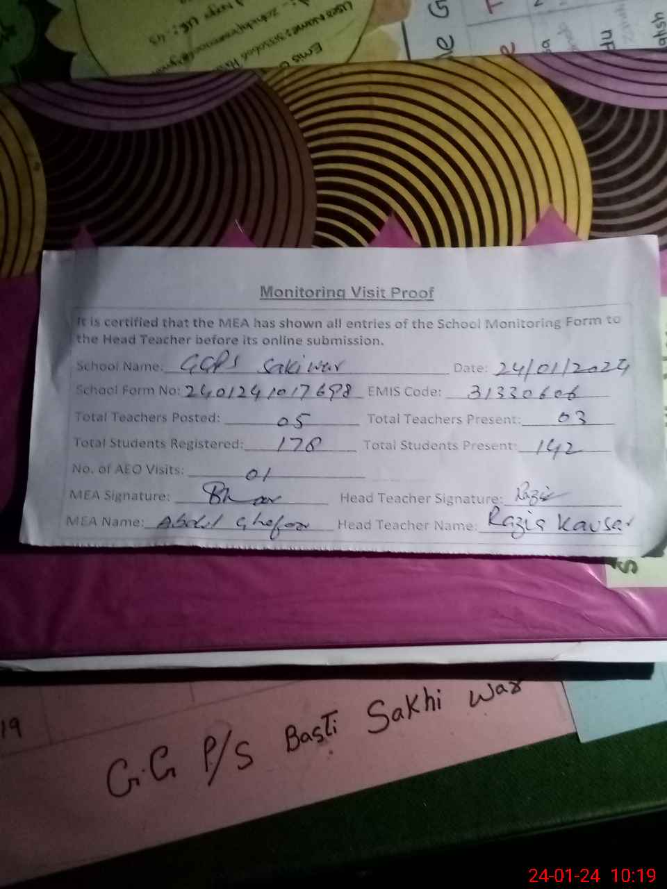 | EMIS Code: 31330606 | Name of School: GGPS SAKHI WAR | |||