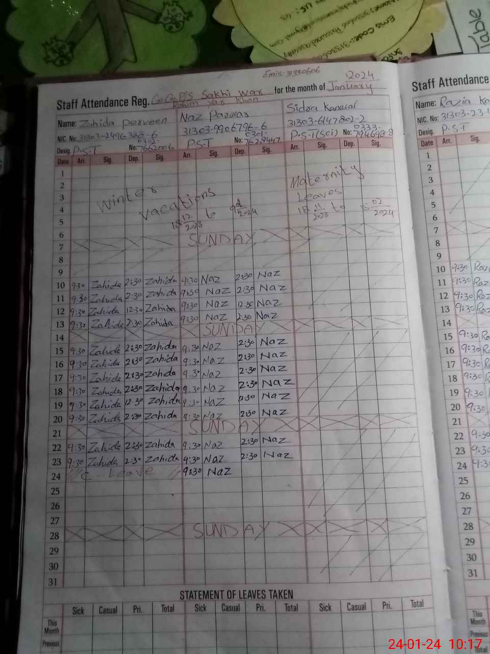 | Leave | Duty | Absent | Maternity | Medical | Ex- Pak |
