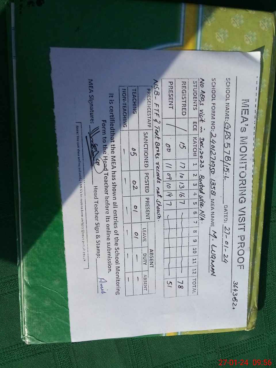 | EMIS Code: 36430520 | Name of School: GPS CHAK NO. 57-B/15-L | |||