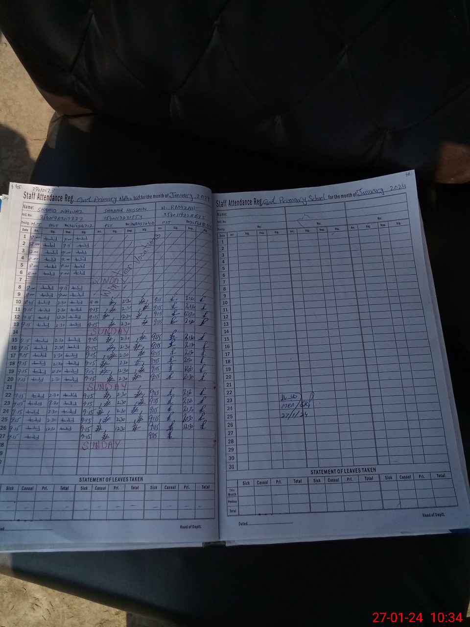 | CNIC | Full Name | Designation | R/C | Absence During Last Calender Month |