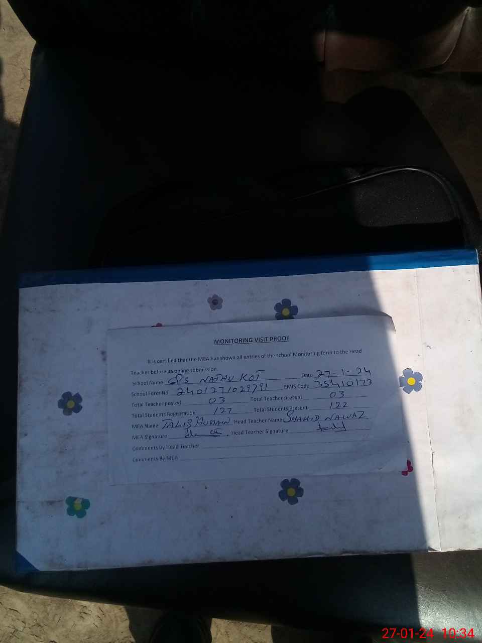 | Attendance Register | Head Teacher | MEA with School | Visit Proof |