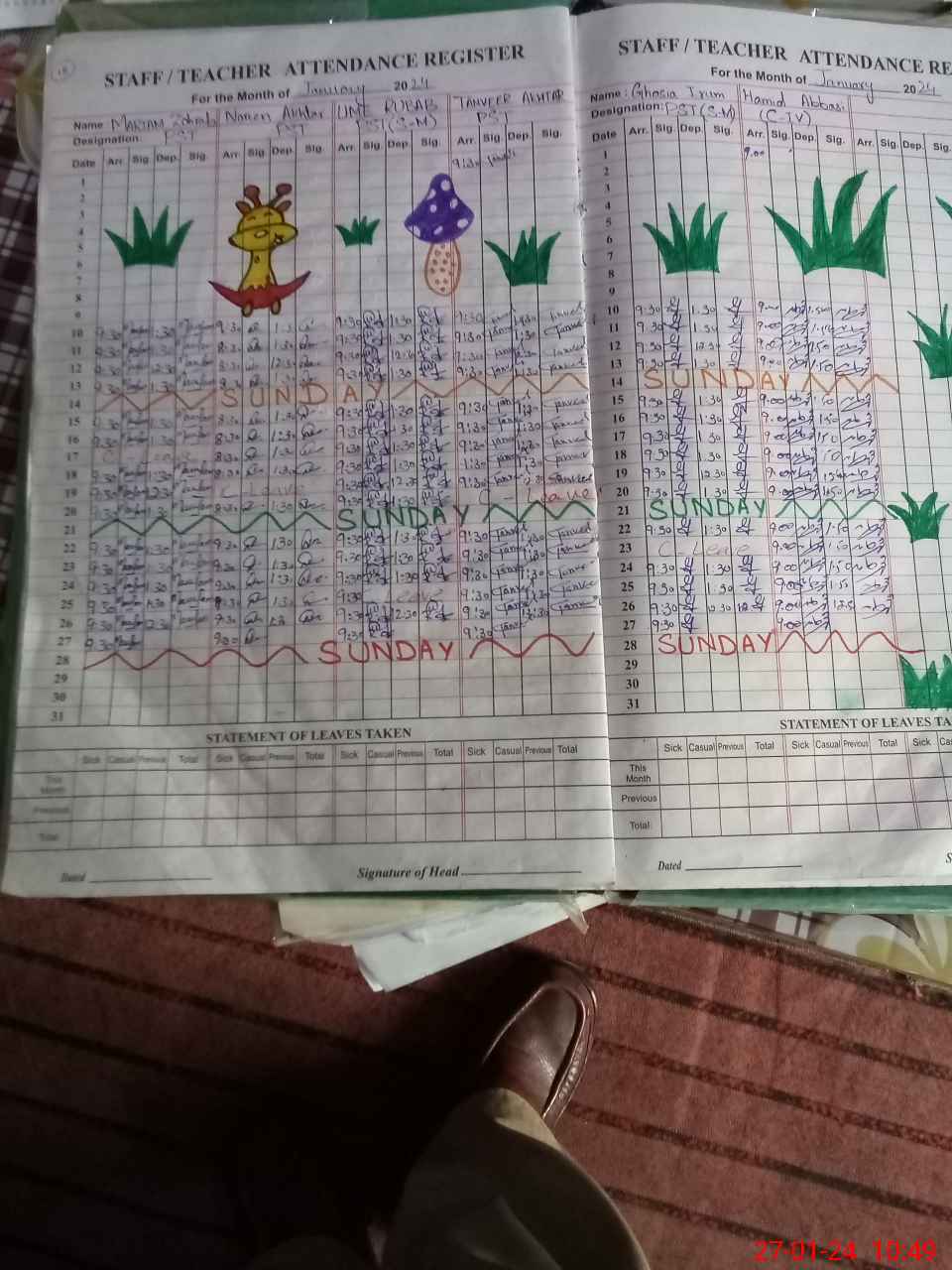 | Leave | Duty | Absent | Maternity | Medical | Ex- Pak |