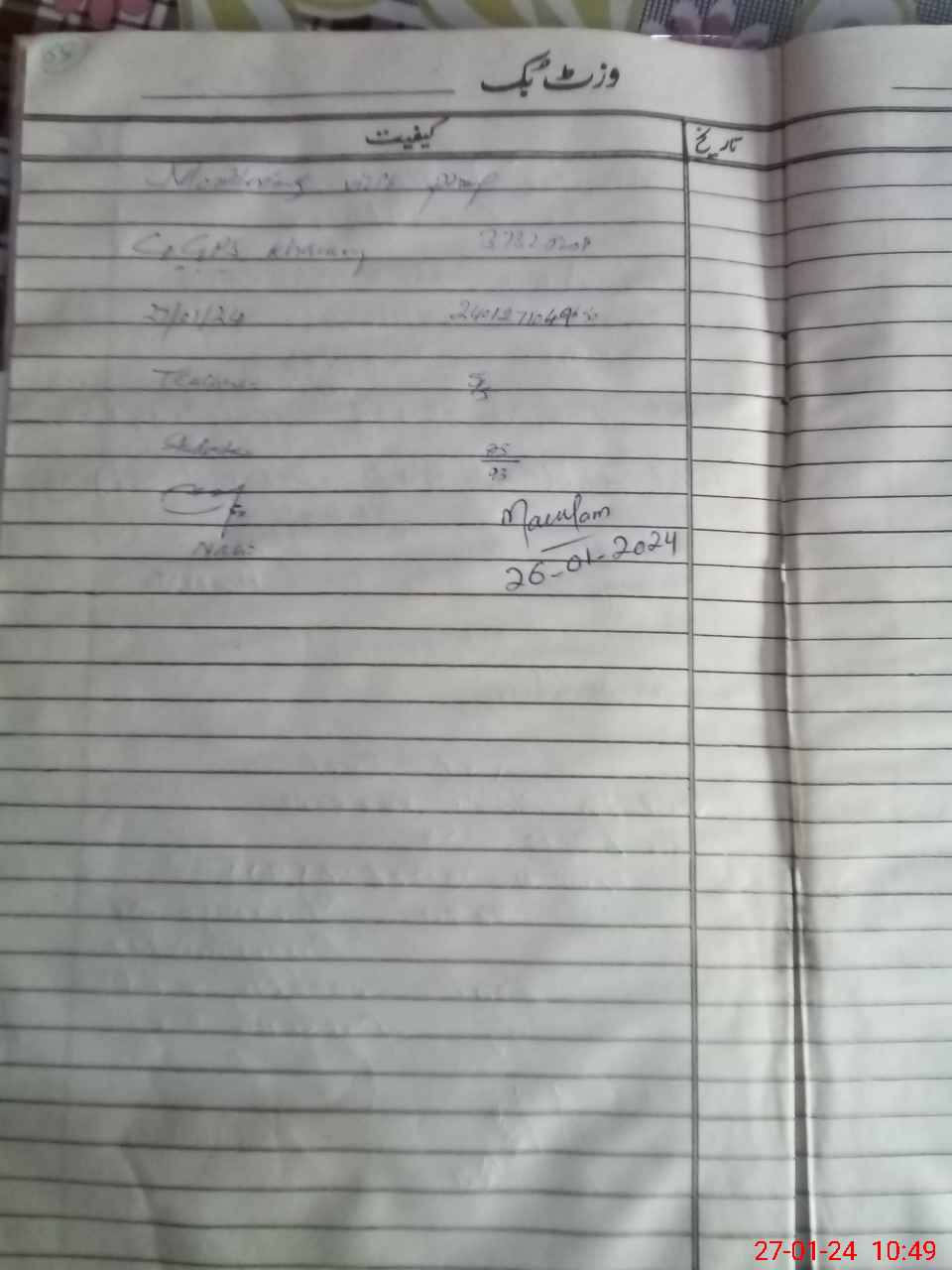 | Monitoring Date: 27-01-2024 | Start Time: 27-01-2024 10:25 AM | End Time: 27-01-2024 11:09 AM | Name of MEA: Rt**** Na**** Me**** | |