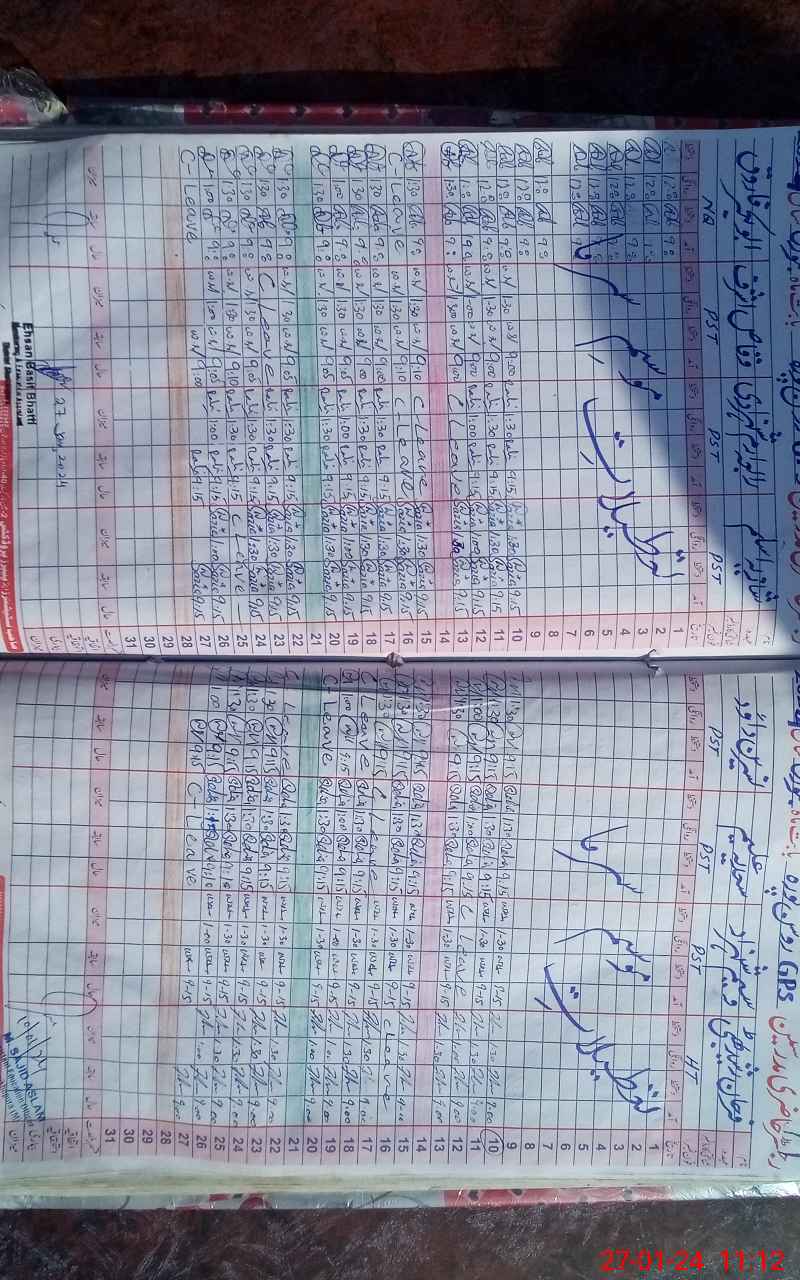 | CNIC | Full Name | Designation | R/C | Absence During Last Calender Month |
