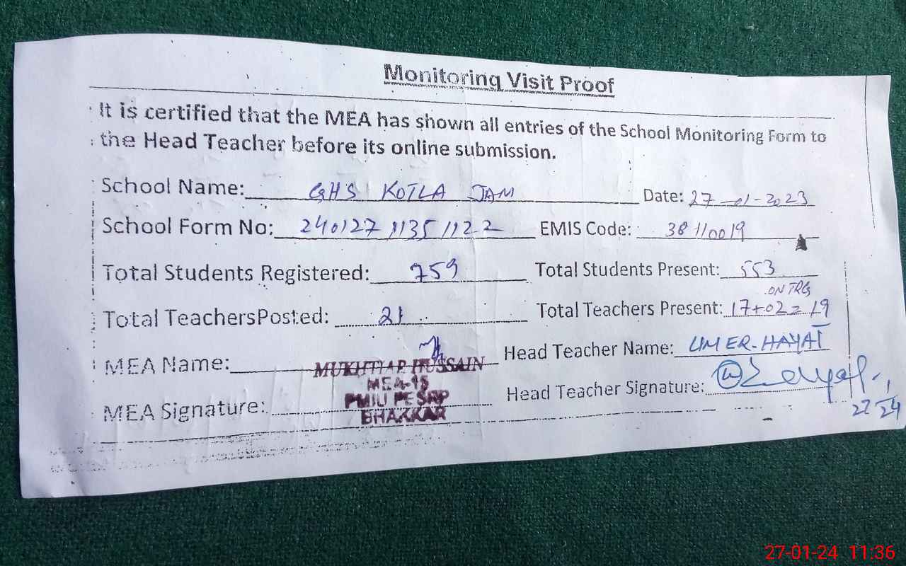 | EMIS Code: 38110019 | Name of School: GHS KOTLA JAM | |||