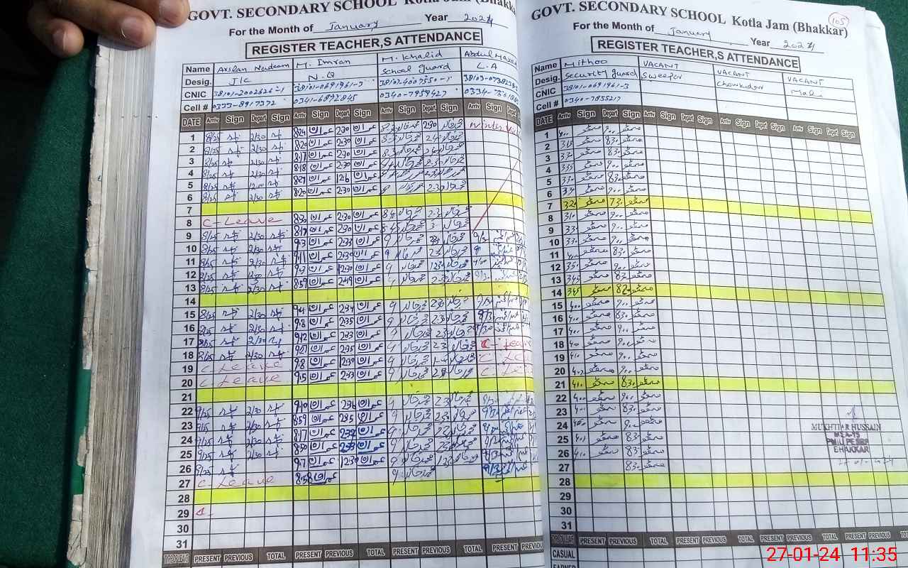 | CNIC | Full Name | Designation | R/C | Absence During Last Calender Month |