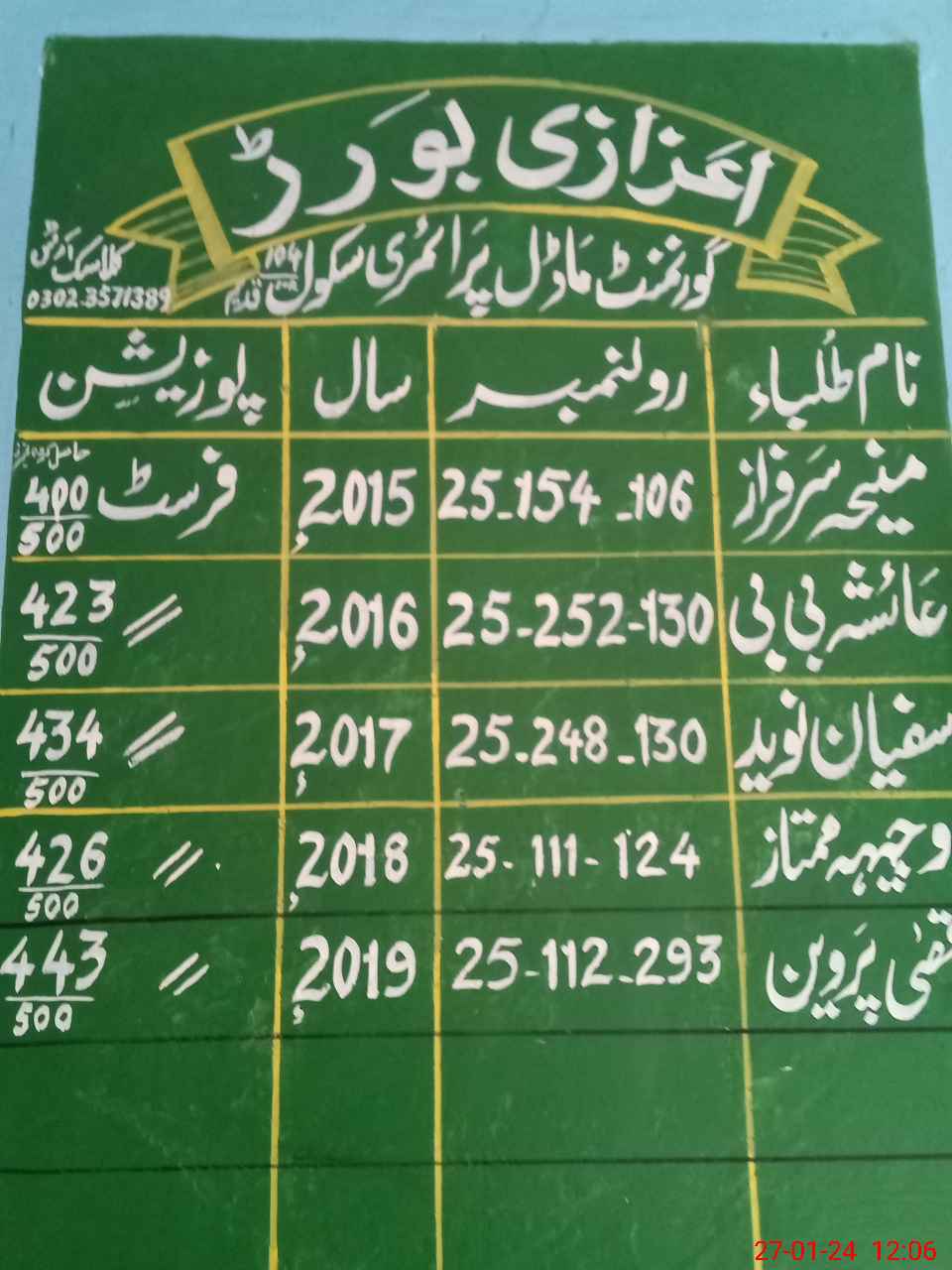 | Name: SU**** BE**** Designation: (School Headmaster's/Headmistress's) PST Phone/Cell Number: 03**** |