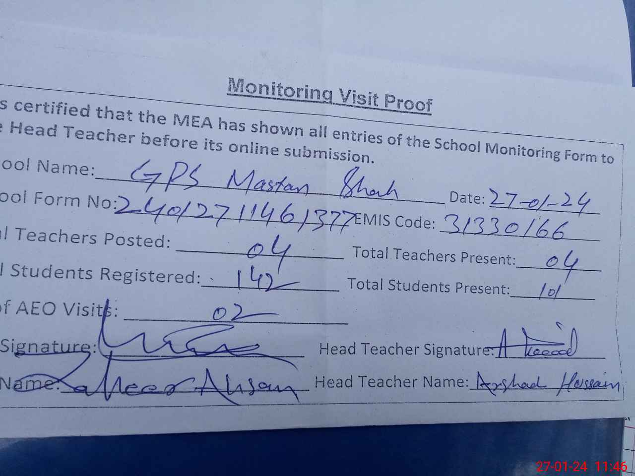 | EMIS Code: 31330166 | Name of School: GPS MASTAN SHAH | |||