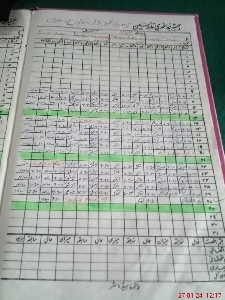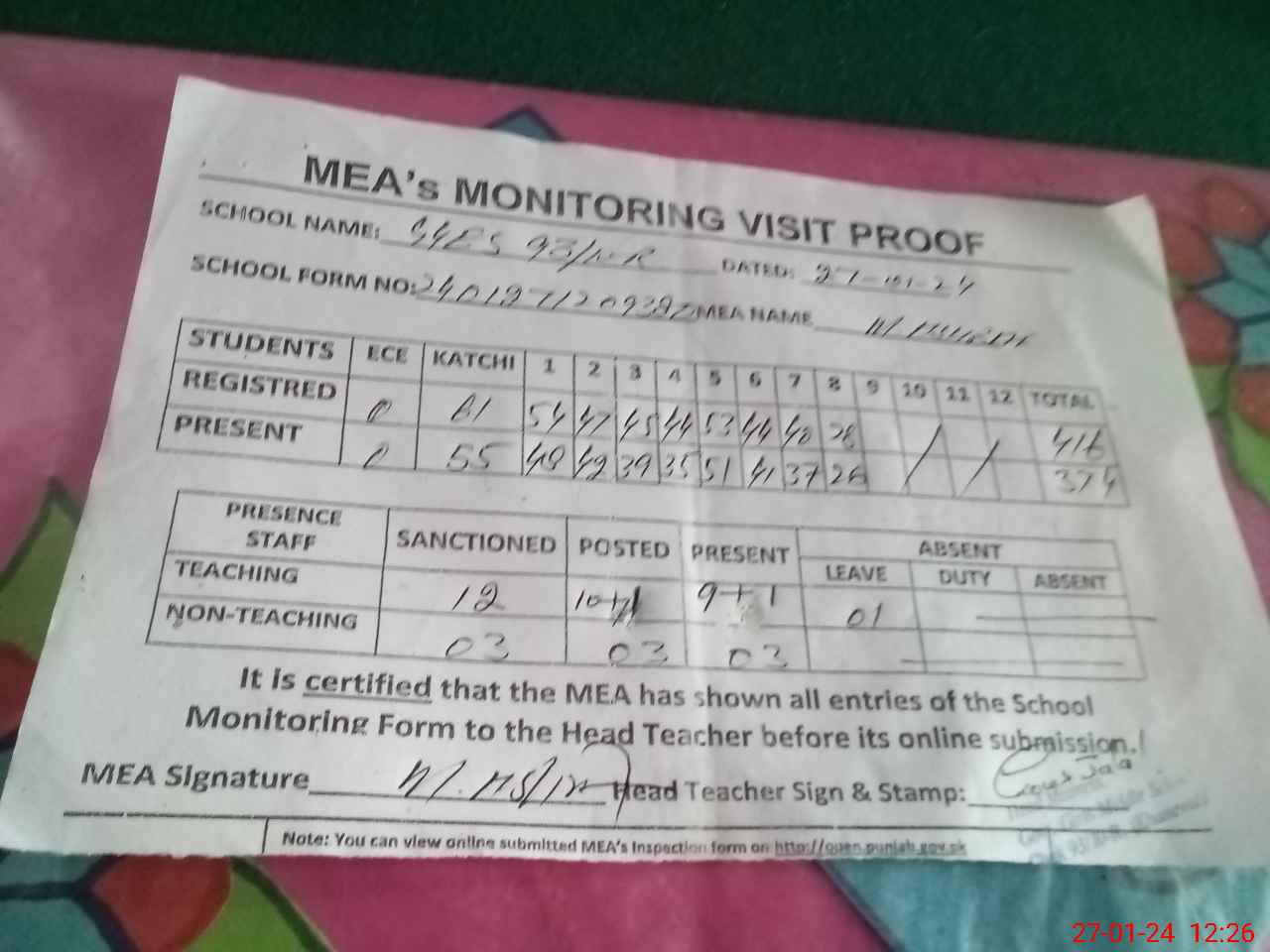 | Remarks (Use Separate Page if Required): Note NO AEO VISIT IN THE MONTH OF DECEMBER 2023 MISS NASIM SHAHID EST NOT SHOWN ON TEACHING STAFF TAB LIST but teacher is is preasent in this school | |||||