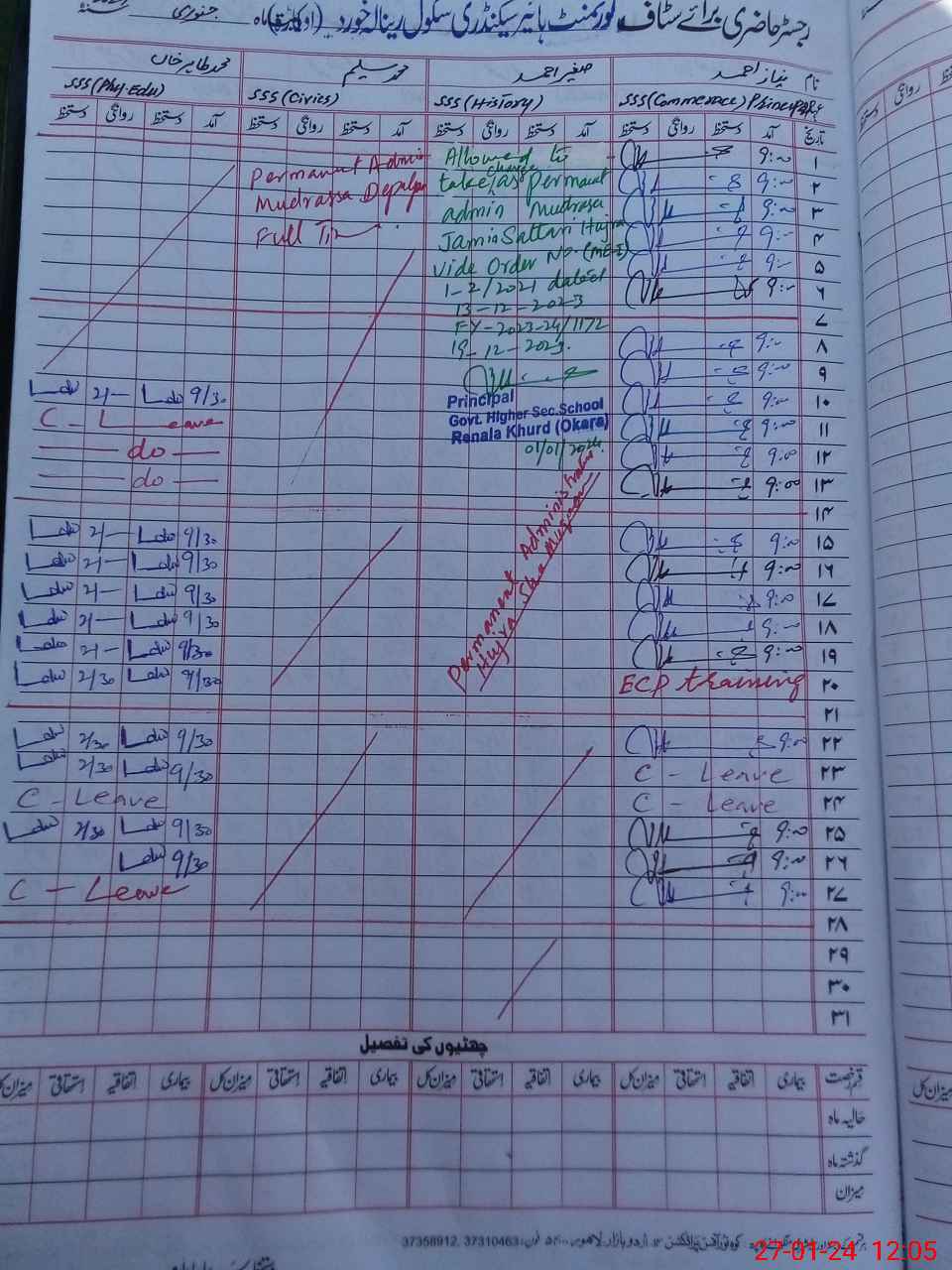 | CNIC | Full Name | Designation | R/C | Absence During Last Calender Month |