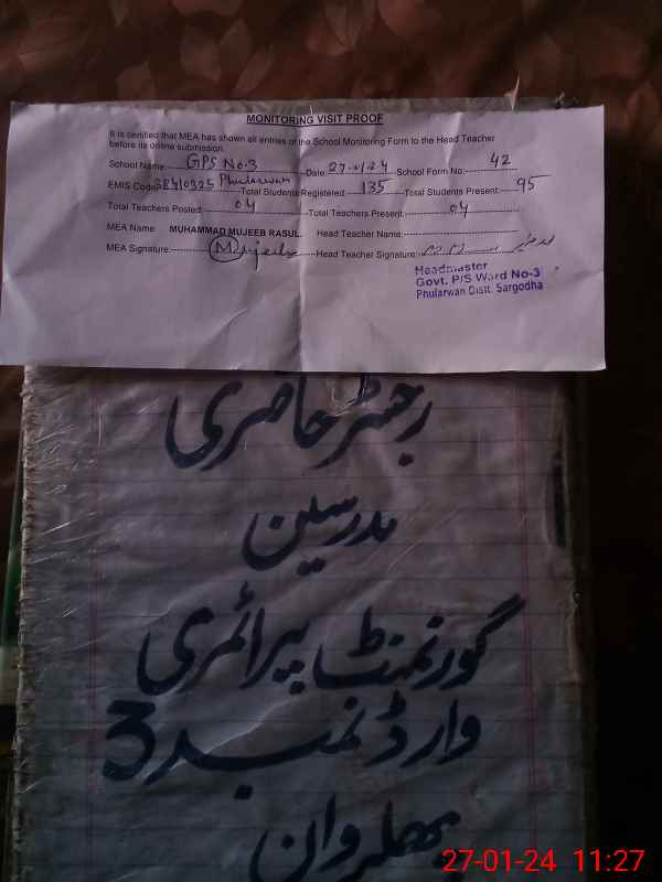 | EMIS Code: 38410325 | Name of School: GPS NO. 3 PHULARWAN | |||