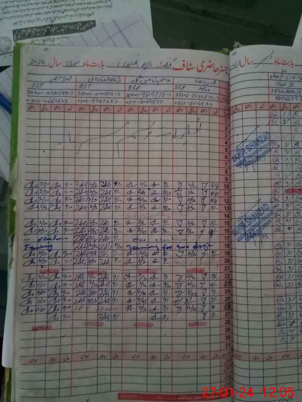 | CNIC | Full Name | Designation | R/C | Absence During Last Calender Month |