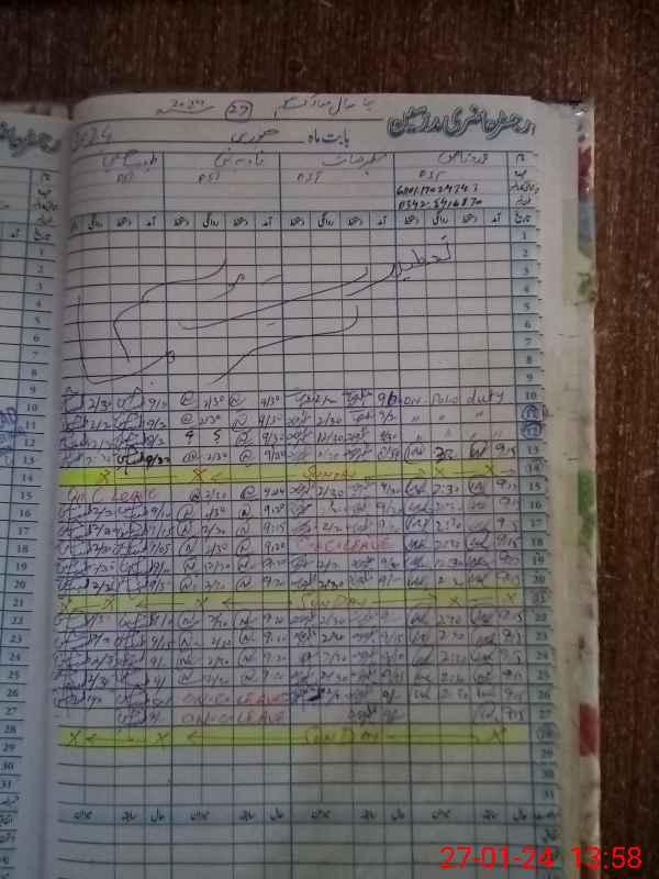| CNIC | Full Name | Designation | R/C | Absence During Last Calender Month |