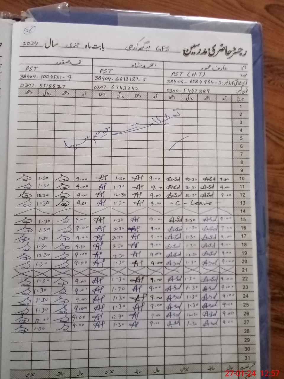 | CNIC | Full Name | Designation | R/C | Absence During Last Calender Month |