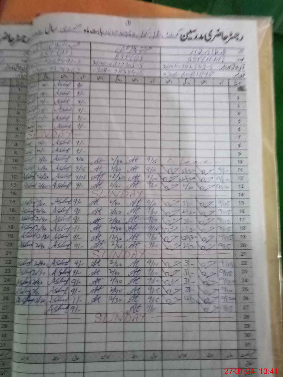 | CNIC | Full Name | Designation | R/C | Absence During Last Calender Month |