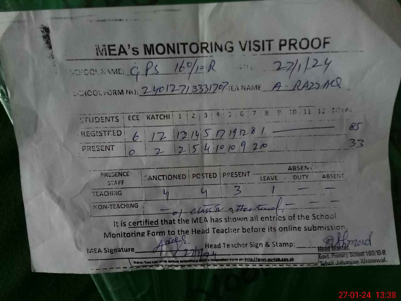 | EMIS Code: 36440316 | Name of School: GPS 160/10-R, JAHANIAN | |||