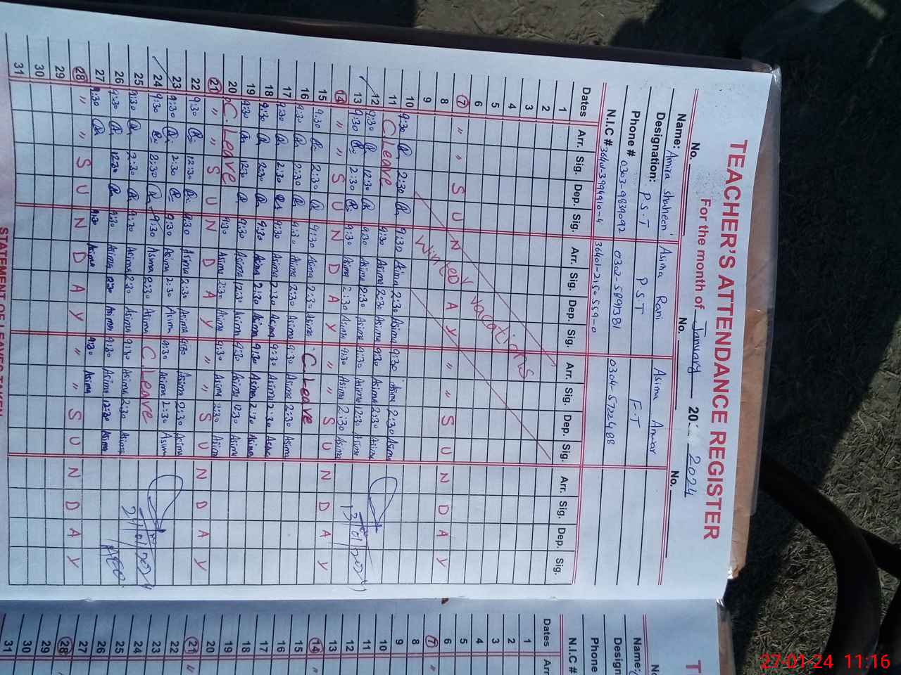 | Name: AM**** SH**** Designation: (School Headmaster's/Headmistress's) PST Phone/Cell Number: 03**** |