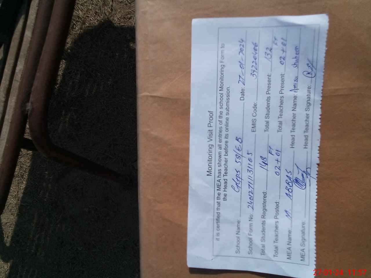 | Attendance Register | Head Teacher | MEA with School | Visit Proof |