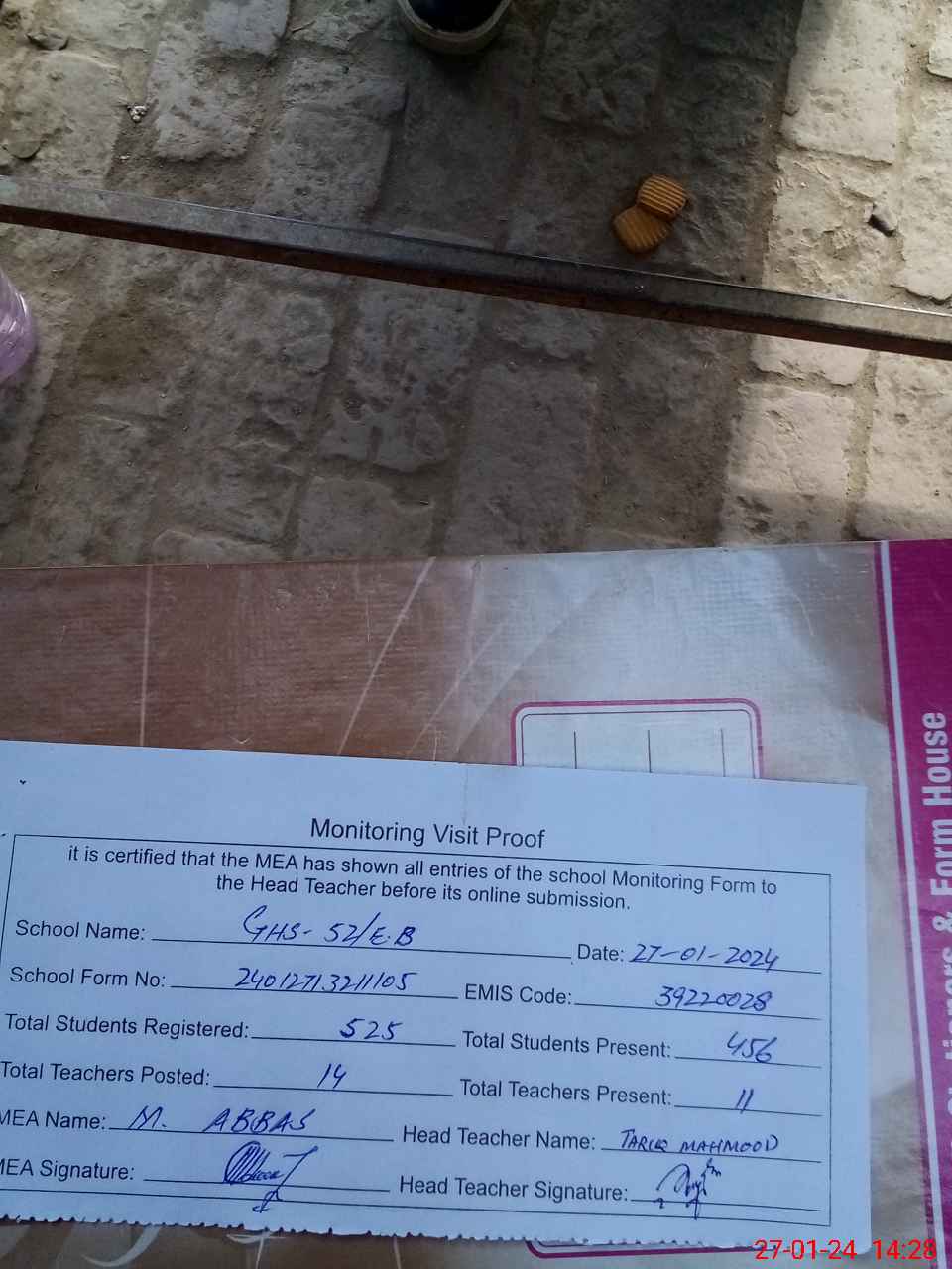 | EMIS Code: 39220028 | Name of School: GHS 52 EB | |||