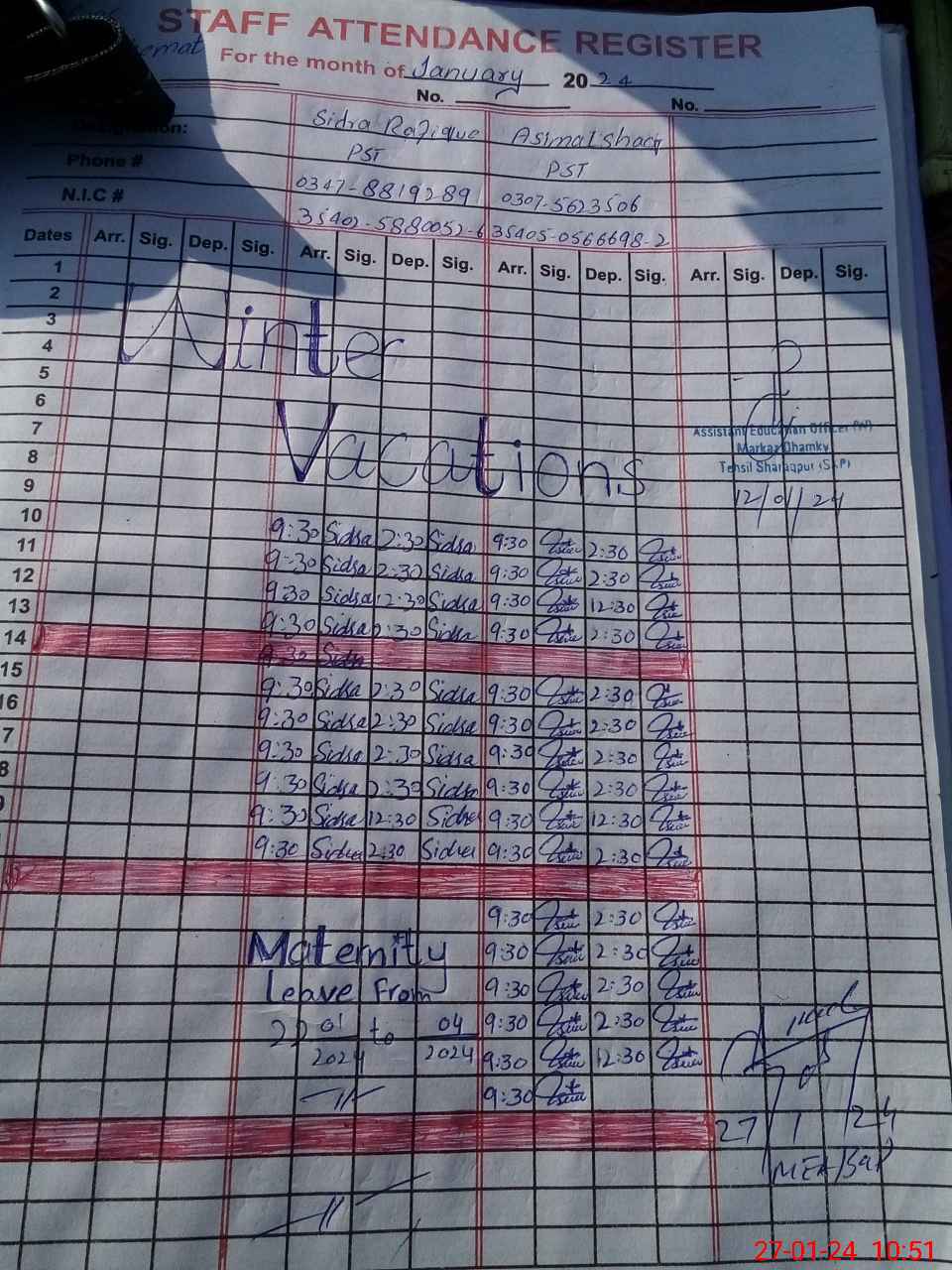 | Name: Si**** Ra**** Designation: (School Headmaster's/Headmistress's) Pst Phone/Cell Number: 03**** |