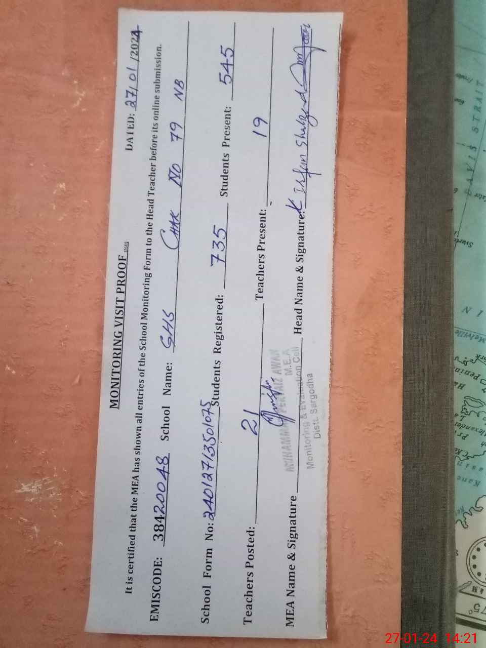 | EMIS Code: 38420048 | Name of School: GHS CHAK NO.79 NB SARGODHA | |||