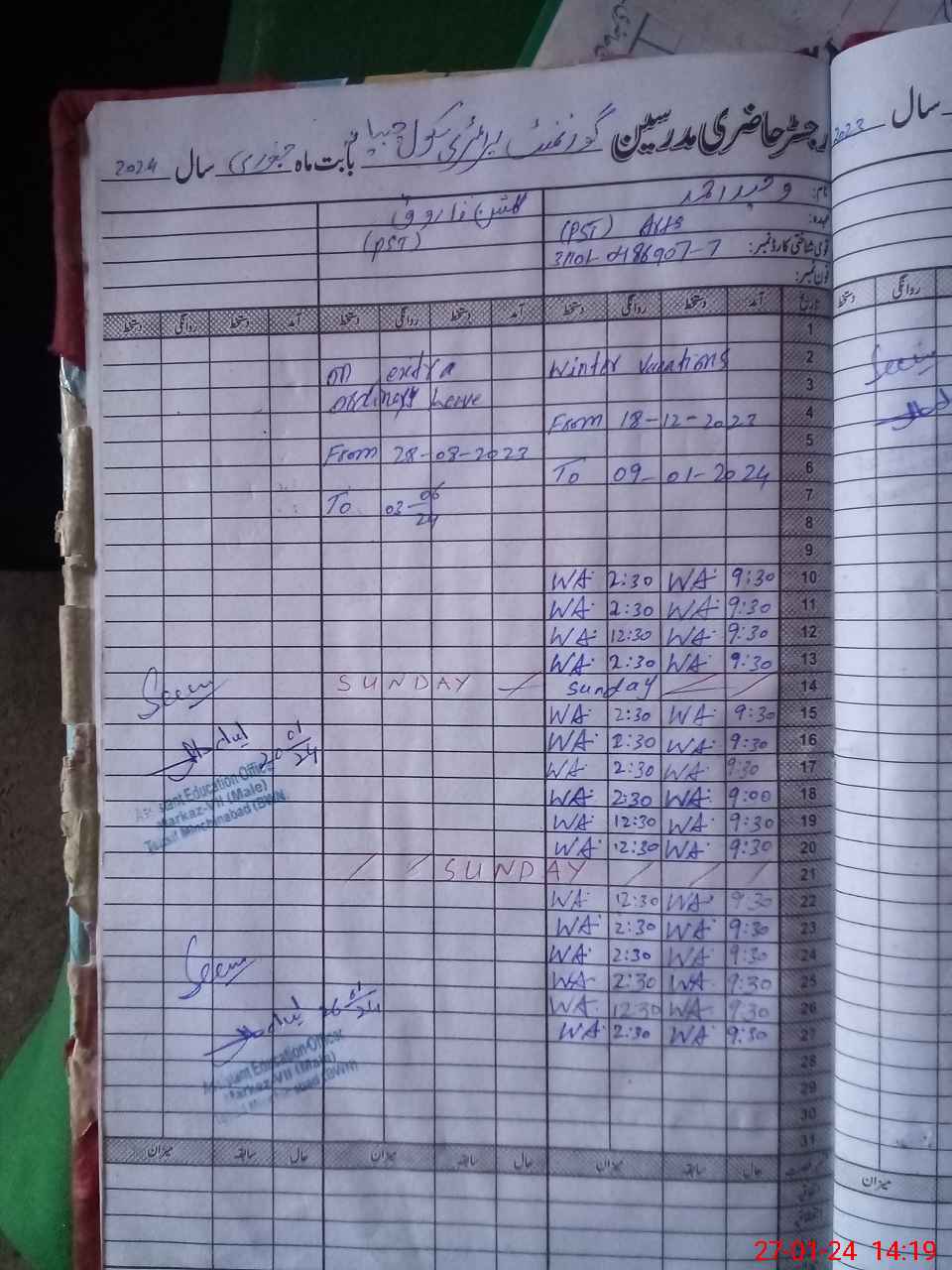 | Remarks (Use Separate Page if Required): Teacher Muhammad Tahir had been expired since long But his name is still present in tabs | |||||