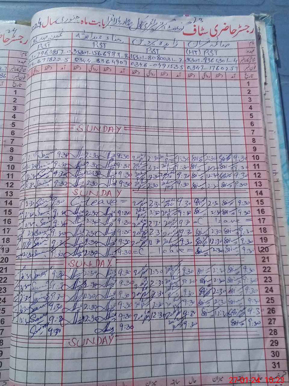 | CNIC | Full Name | Designation | R/C | Absence During Last Calender Month |