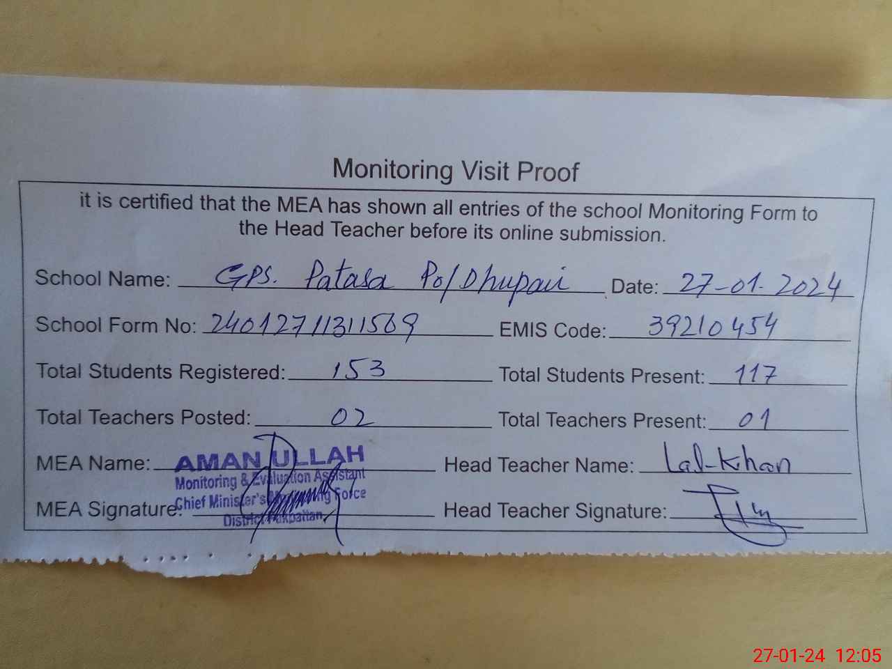 | EMIS Code: 39210454 | Name of School: GPS PATASA P/O DHUPAI | |||