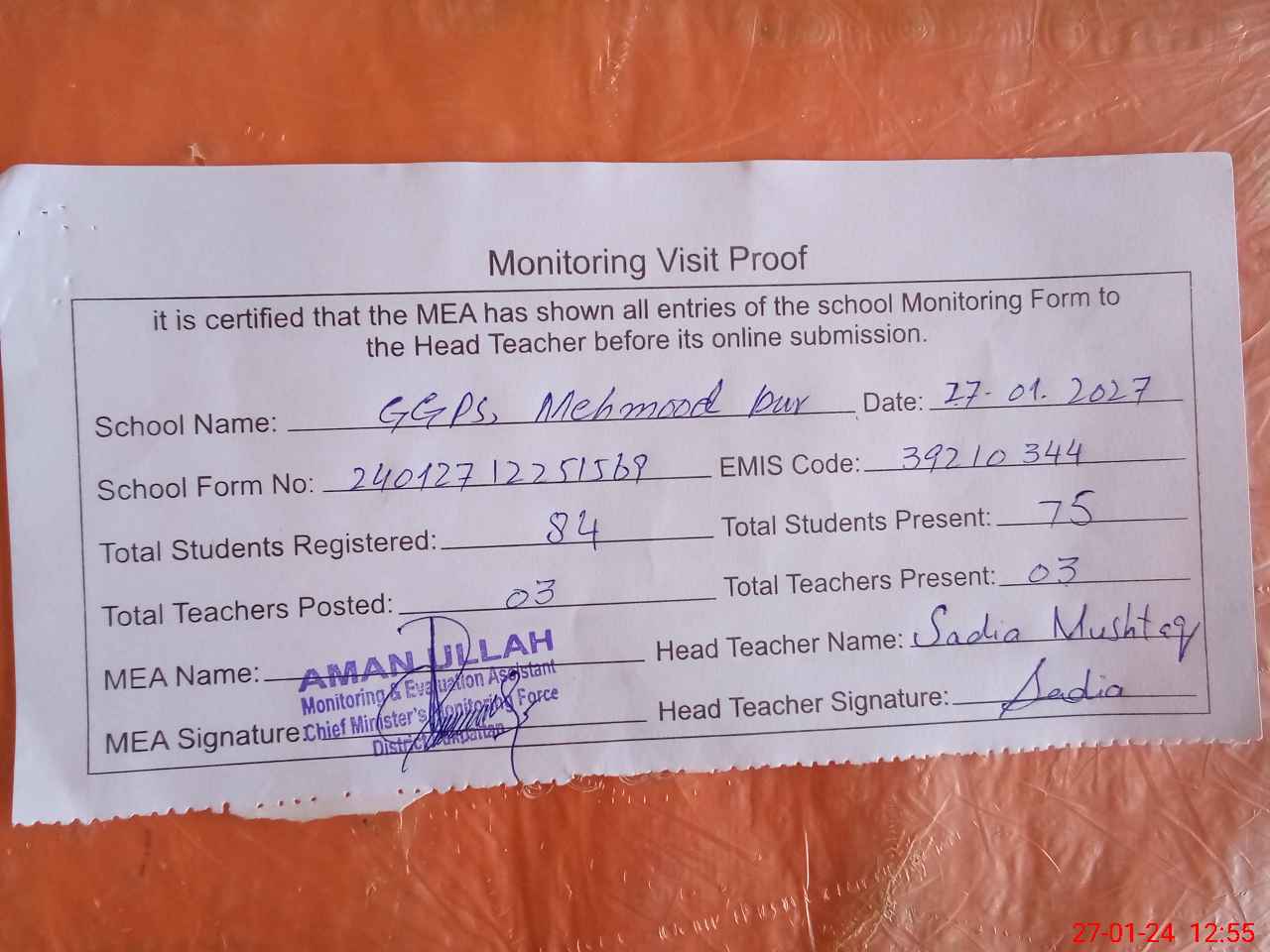 | EMIS Code: 39210344 | Name of School: GGPS MAHMOOD PUR | |||