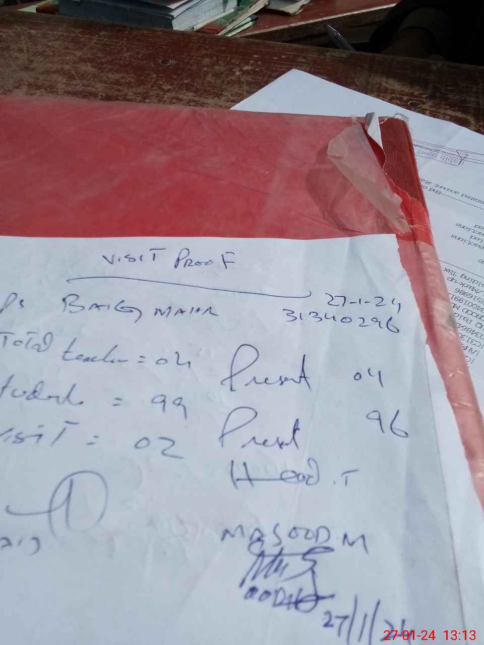 | Attendance Register | Head Teacher | MEA with School | Visit Proof |