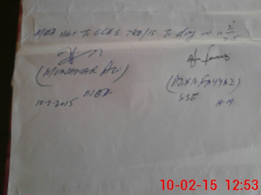 | Monitoring Date: 10-02-2015 | Start Time: 10-02-2015 12:35 PM | End Time: 10-02-2015 12:53 PM | Name of MEA: Mu**** Al**** ex**** | |