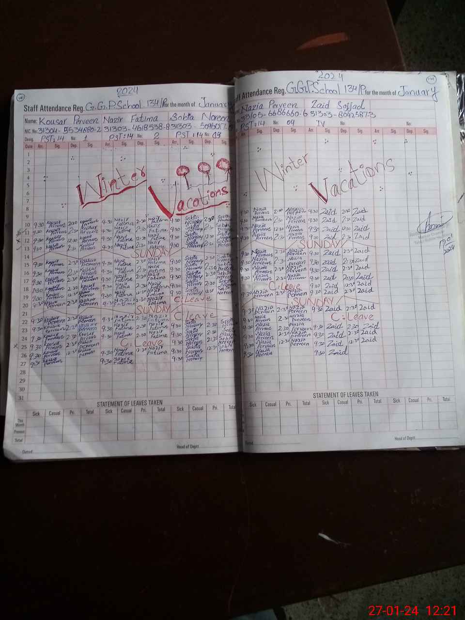 | CNIC | Full Name | Designation | R/C | Absence During Last Calender Month |