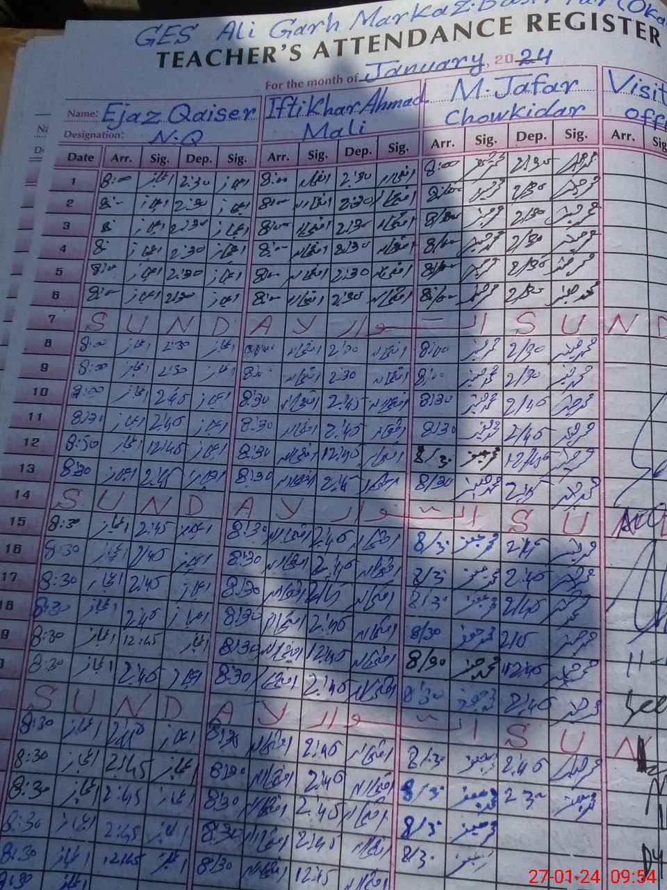 | EMIS Code: 39310071 | Name of School: GES ALI GARH | |||