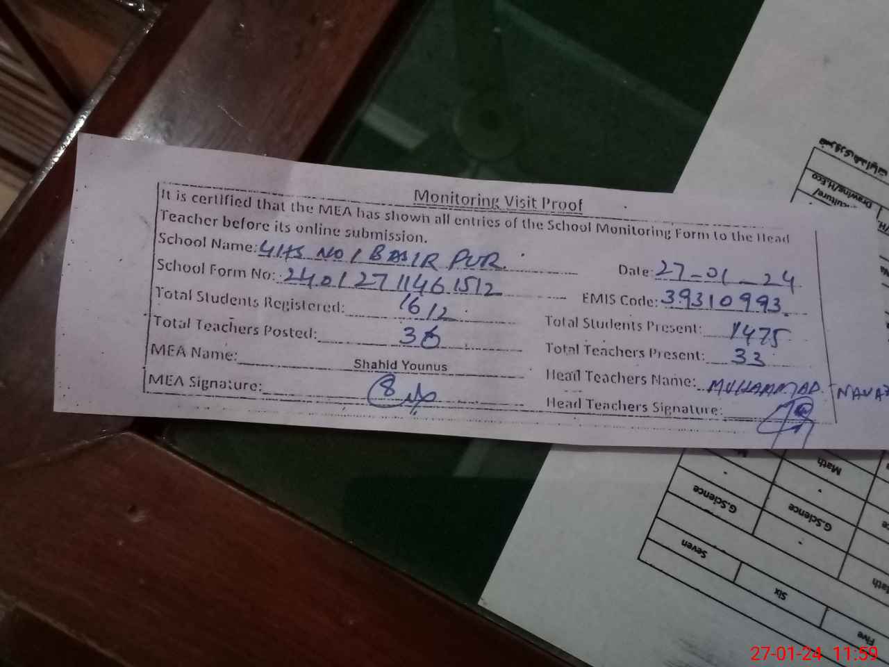 | EMIS Code: 39310993 | Name of School: GHS NO. 1 BASIR PUR MAIN ROAD | |||