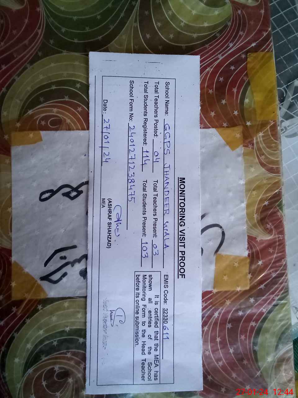 | EMIS Code: 32330611 | Name of School: GGPS JHANDEER WALA | |||