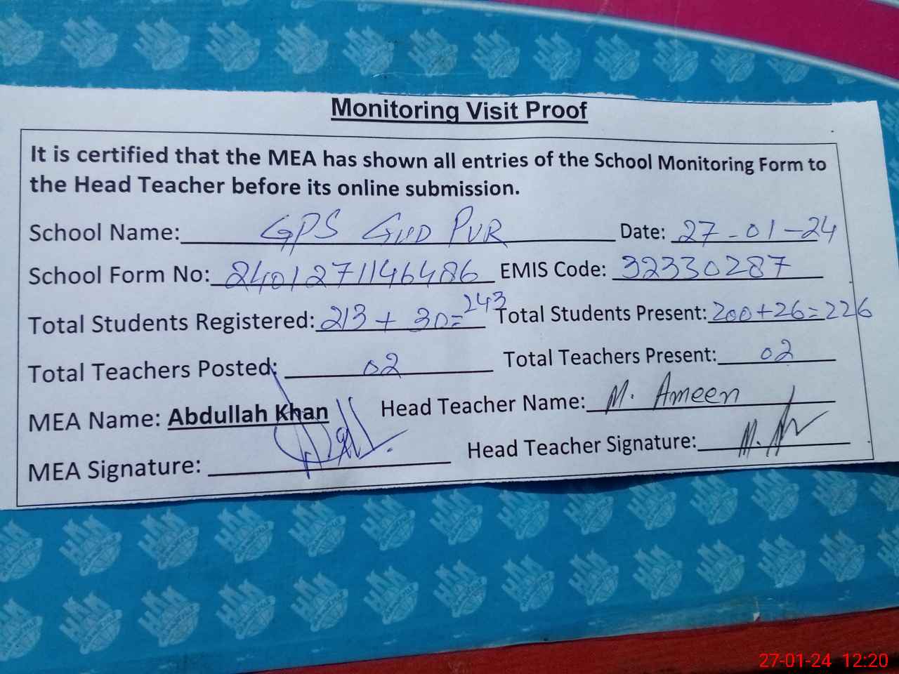 | EMIS Code: 32330287 | Name of School: GPS GUD PUR | |||