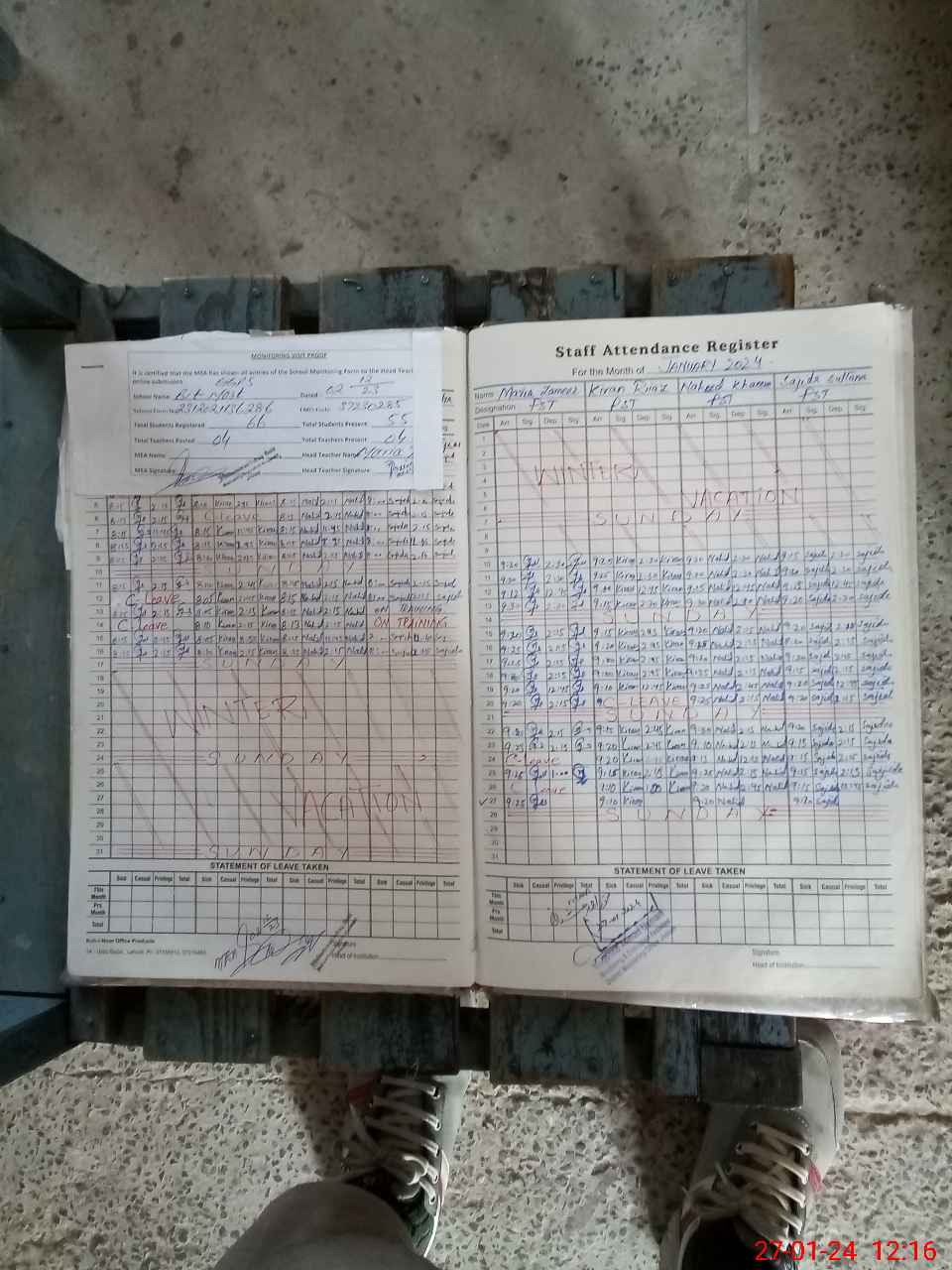| Attendance Register | Head Teacher | MEA with School | Visit Proof |