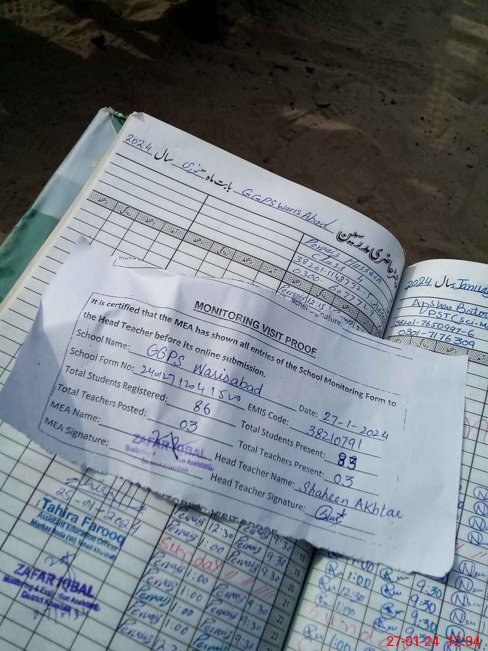 | Name: Sh**** Ak**** Designation: (School Headmaster's/Headmistress's) PST Phone/Cell Number: 03**** |