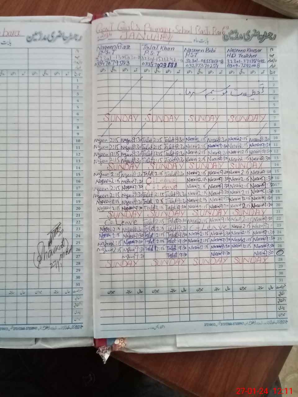 | CNIC | Full Name | Designation | R/C | Absence During Last Calender Month |