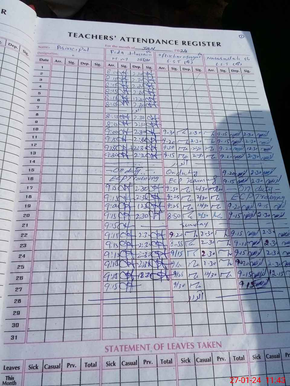 | Leave | Duty | Absent | Maternity | Medical | Ex- Pak |