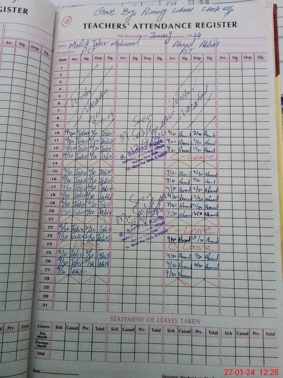 | Leave | Duty | Absent | Maternity | Medical | Ex- Pak |