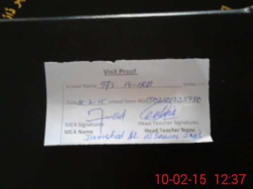 | Attendance Register | Head Teacher | MEA with School | Visit Proof |