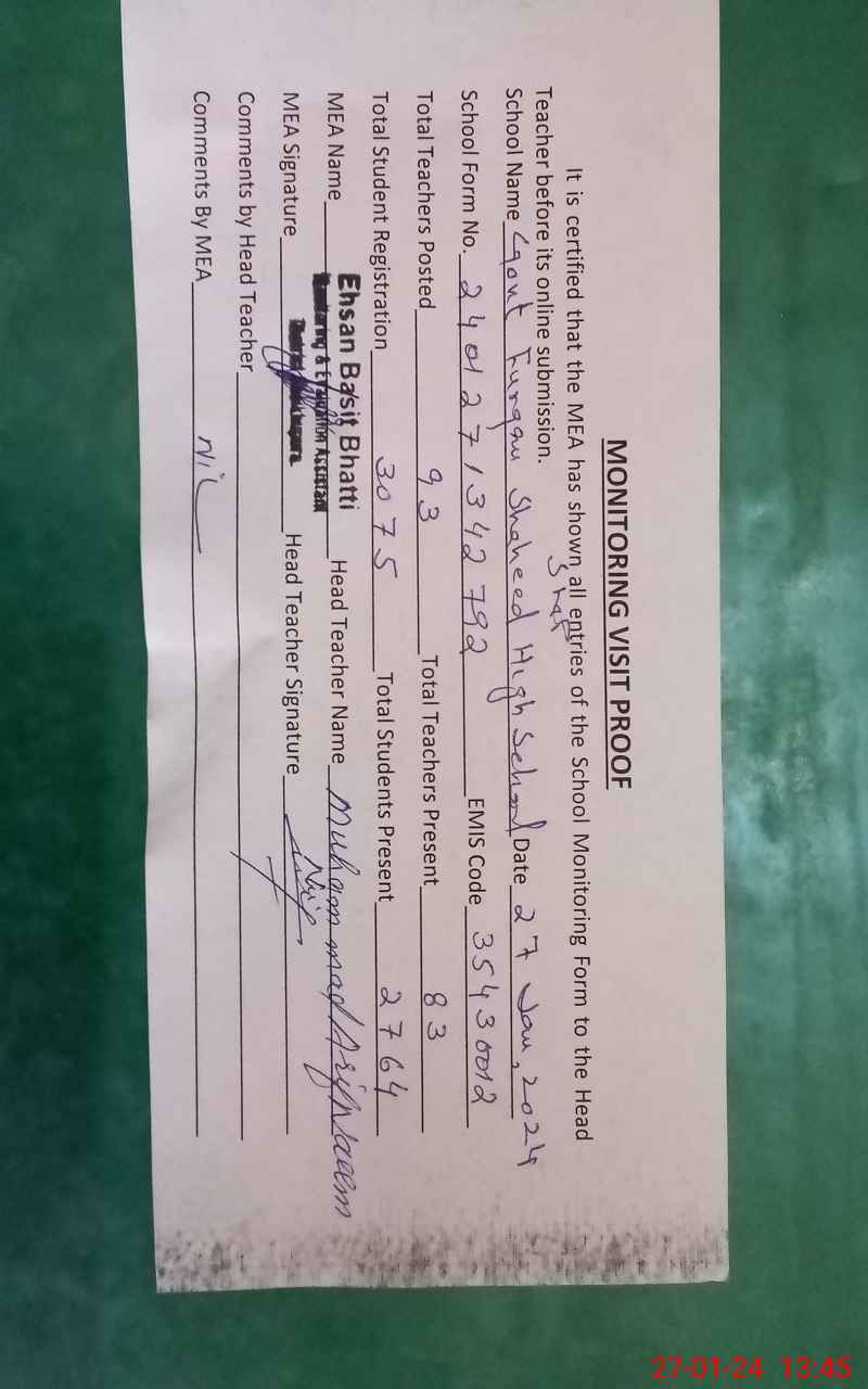 | EMIS Code: 35430012 | Name of School: GOVT. FURQAN SHAHEED HIGH SCHOOL SHEIKHUPURA | |||