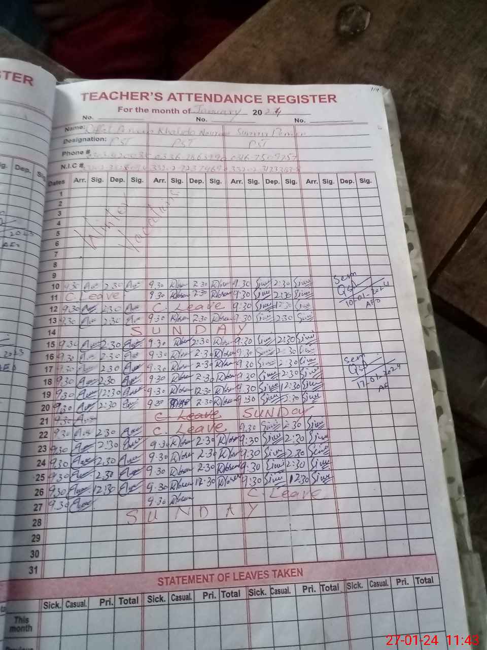 | Name: RI**** PE**** Designation: (School Headmaster's/Headmistress's) PST Phone/Cell Number: 03**** |